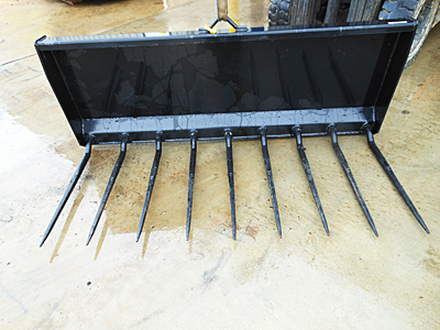 Description: New Walco Renegade 145215 72" manure tine fork bucket, nine 36" long conus tines, universal SSL quick tach plate. Note: This manure tine fork bucket has been sold, but additional units are available. They also are available in 60" and 84" widths. All three sizes are available with Euro-tach plates. Please call for details. 03/17/2023