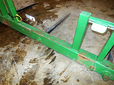 Description: Used John Deere (custom made) 3-tine bale spear, three 32" Conus II tines with JD Q-tach plate. S.N.: N.A.