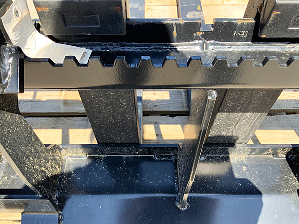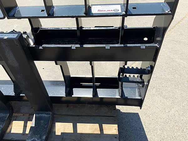 Description: New Virnig WPF4855 48" 5,500 lb. pallet fork set, 54.5" wide fork frame. Removable center guard allows change to a walk-through brickyard, weighs 450 lbs., comes with step and hardware to bolt on either side. The 60" WPF6055 forks come in at 59" total width with step. Note: Both 48" forks have been sold, but please call for current price and availability of a new set.