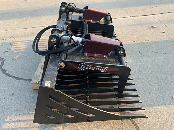 Description: New Virnig SRGV78 V50 78" skeleton rock grapple bucket with hoses and flat-face couplers, bucket depth of 42.9", 2.9" spacing between tines. Weighs 1,080 lbs. Lists @ $6,420. Recommended for SSL's with greater than 1,500 lb. capacity. Note: This grapple bucket has been sold, but please call for current price and availability of a new unit. 04/11/2025