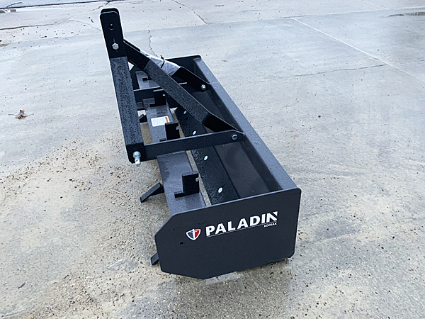 Description: New Paladin (Kodiak) 20 KBS 1060-GY-K 5 ft. standard duty box blae, dual reversible/replaceable bolt-on cutting edges, four pin adjustable scarfier teeth with replaceable tips, CAT I 3pt. quick hitch compatible. Gray in color.