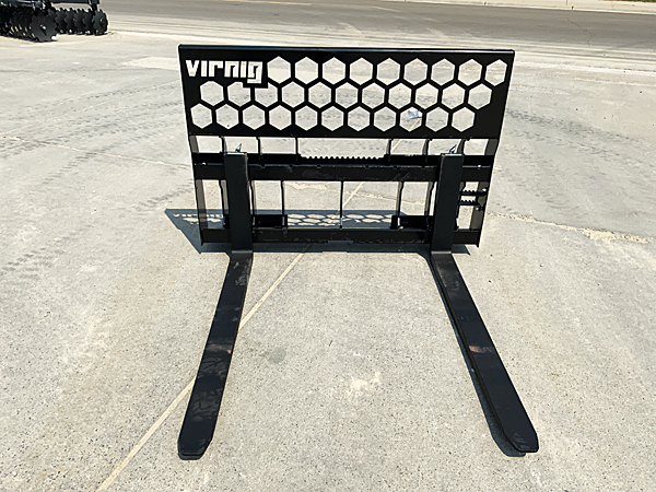 Description: New Virnig WPFHG4855 48" 5,500 lb. pallet fork set, 54.5" wide hex-guard frame, weighs 420 lbs., comes with step and harware to bolt to either side. Overall height is 37". We have four units in stock. 11/1/2022