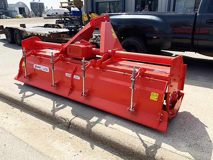 Description: New Nordland UHH-120-ORA (141070BD) 120" Cat II/III 3 pt. tiller, quick hitch compatible, 1,000 PTO, 6-blade rotor flange with 72 tines, up to 10" tilling depth. Requires minimum 100 hp/maximum 140 hp. Weighs 2,573 lbs. Lists @ $13,215, plus freight and setup. Note: This tiller has been sold, but additional units are available. Please call for details. 07/01/2025