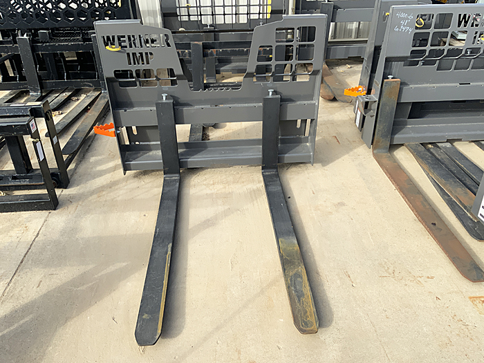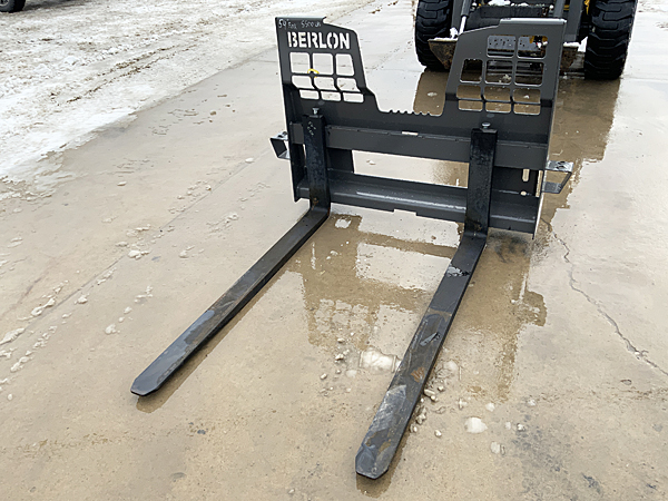 Berlon BLD PFF-48 48" and BLD PFF-42 42" Class II pallet fork sets, 2,500 lb. capacity, weigh 275 lbs., forks are 4" wide X 1⅜" thick X 48" and 42" long, have universal SSL Q-tach plates. Pallet forks & mount plates are all USA made. List @ $975. We have three 48" and two 42" fork sets in stock.