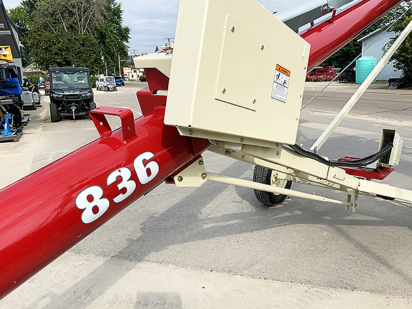 Description: New Buhler Farm King C836E 8" X 36' double-belt electric motor drive auger, new tubeless tires, upper enclosed chain drive, includes factory freight into dealership and setup, less motor and motor pulley. Lists @ $7,580, including freight, setup and tires. We have two units in stock.