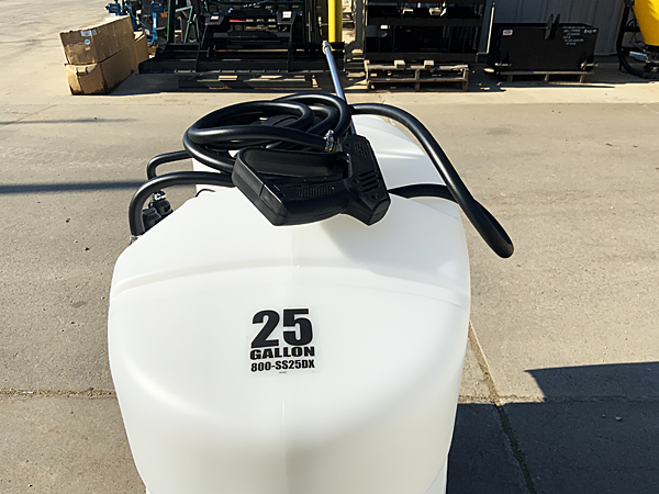 Description: 25 gallon Ag Smart spot sprayer, 1.0 GPM 12V Pump, lever grip handgun with 15' of 3/8" hose, compatible with quick release ATV spray boom kits.