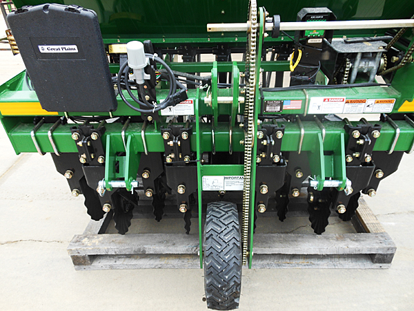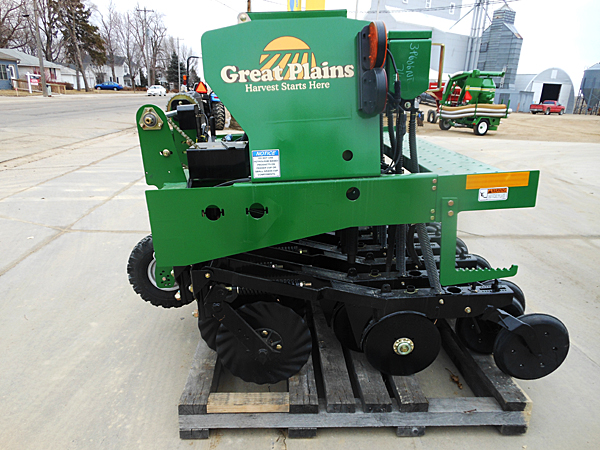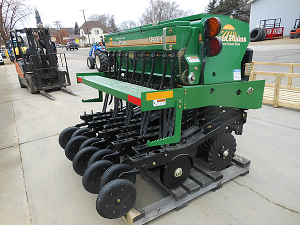 Description: New Great Plains Model 3P606NT-0975 6' 3 pt. mounted grain drill, 7½" spacing, nine double disk openers, nine 18" no-till coulters, nine 3" X 13" press wheels, acre counter, rear walk board, large and small seed boxes, ground driven, Cat II/III 3 pt. hitch mast, transport light package, four-speed gearbox for seed rate, grease bank, optional weight brackets and weights. Financing available. Lists @ $23,190 plus freight and setup. Note: All three grain drills have been sold, but additional units are available. Please call for details. 05/01/2025