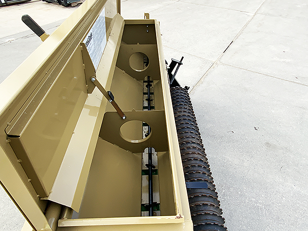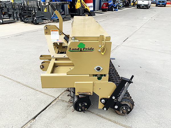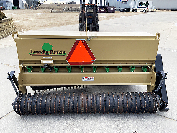 Description: Used Land Pride APS1572 6-foot all-purpose seeder, 6-bushel capacity, 10 fluted seed cups, two 8" diameter spiked rollers, can angle rollers from 0 to 20 degrees, rear spring-loaded roller, operator manual, weighs approximately 836 lbs. Like new, low-usage unit, serviced through our shop.