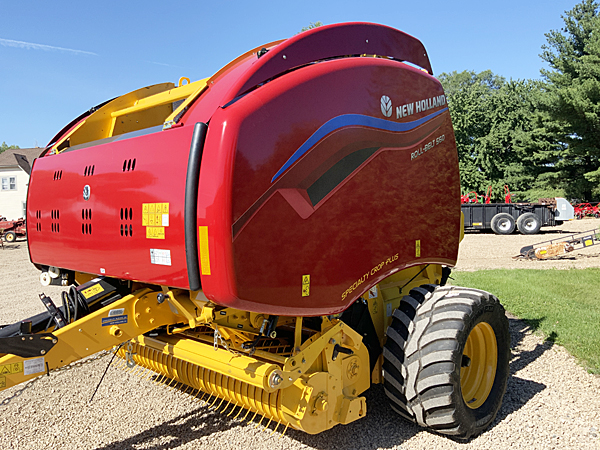 Description: New 2024 New Holland 560 Specialty Crop Plus Roll-Belt round baler, endless belt, net/twine (Deluxe wrap), 550/45 22.5 tires, 1,000 PTO with cutout clutch, in-cab density system, bale ramp, belt-drive de-clutch, moisture sensor FF, hydraulic pickup lift, two 15X6.00-6 castering pickup wheels, 2.07m 5-bar pickup with roller windguard, clevis hitch. We have three one unit in stock. 11/16/2024