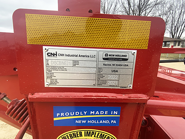 Description: New New Holland 210R discbine mower conditioner, drawbar swivel hitch, 540 PTO, robber conditioner rolls, hydraulic header tilt, mow max cutter bar with quick change knives, 3 year cutter bar warranty, transport light package. We have two units in stock. 12/15/2025