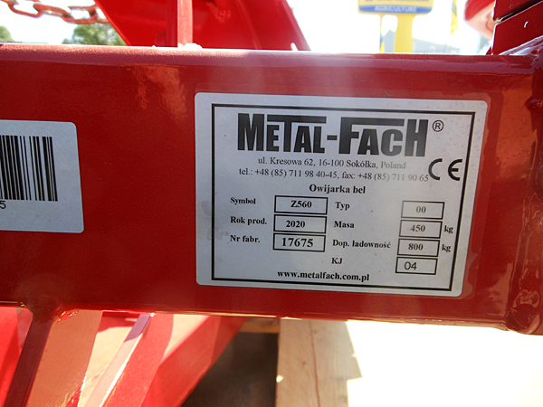 Description: New Metal-Fach Z560 individual round bale wrapper, will wrap bales 4' wide by up to 5' diameter, with maximum bale weight of 2,200 lbs., 3 pt. mount with use of tractor hydraulics. Wrap time approximately 80 seconds. Includes wrap counter. Weighs approximately 1,100 lbs. Lists @ $6,080 including freight and setup. Note: Both bale wrappers have been sold, but we have two units on order and they will be in stock 04/01/2026. 02/12/2026