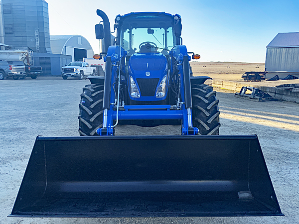 Description: New 2025 New Holland T5.120DC 4wd tractor, 24X24 Dual Command 25 mph/40 KPH transmission with LH power shuttle shift, 540/1,000 PTO, 4 cylinder turbocharged engine (207 cubic inch/3.4L) with 120 engine hp, 100 PTO hp, hand & foot throttle controls, heavy duty flange-type rear axles, open center hydraulic system with 16.9 GPM implement pump & oil cooler, two rear open center remote valves with detent, electronic engaged differential lock, Cat II 3 pt. arms with telescopic stabilizers & flexible lower link ends, 5,620 lb. 3 pt. lift capacity, cab with heater, AC, Hi-Vis panel in cab roof, instructional (buddy) seat, radio with speakers and antenna, 7 pin rear power outlet for trailer & implement lighting, full front & rear work lights & road lights, turn signals & flashers, 380/85R24 R1W (14.9XR24) Galaxy Earth Pro radial 850 front tires, 460/85R34 R1W (18.4XR34) Galaxy Earth Pro radial 850 rear tires, two mid-mount loader valves with mechanical joystick control, external fender-mounted PTO switches, four 110 lb. rear wheel weights, New Holland 720LU non-self leveling loader with 84" SSL Q-tach snow/light material bucket, grille bumper guard, bucket level indicator. Note: All three tractors we had in stock have been sold, but additional units are available. Please call for details.
