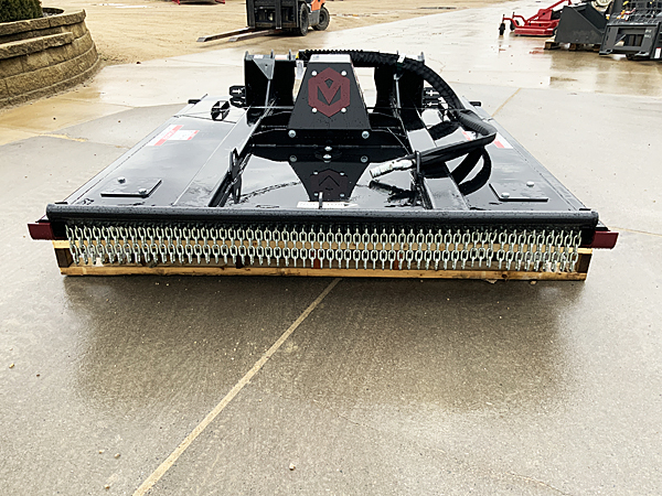 Description: New 2022 Virnig RBV72-25 72" V50 closed front rotary brush cutter, 18-25 gpm standard flow, 4" cut capacity, three ½" X 4" single side upshaft blades, chain front curtain, replaceable front skid shoes, direct drive Eaton motor with relief valves, hoses with flat face couplers. 1.8" minimum cut height. Weighs 1,435 lbs. Lists at $9,225. Note: We sold both of the SSL cutters we had in stock, but please call for the current price and the availability of a new unit.