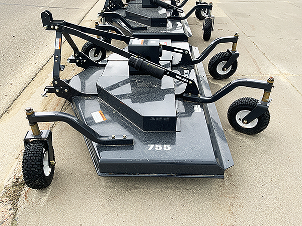 Description: New Y755C 84" heavy duty rear disharge 3 pt. finishing mower with hard surfaced blades, Cat I 3 pt. hitch, quick hitch compatible. Lists @ $5,852. Weighs 780 lbs. Charcoal in color. We have two units in stock. 06/14/2025