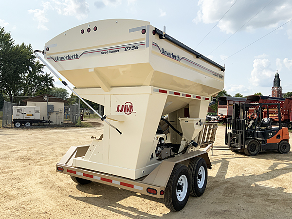 Description: New Unverferth 2755 Seed Runner, 6" X 18' belt conveyor, dual compartment, 275 seed units, hopper cover for conveyor, two-axle trailer with electric brakes, set of four 235/85X16 highway-rated tires, two-function wired remote (raises/lowers and starts/stops the conveyor), 14 hp Vanguard engine with electric start and battery plus rope start, 2520 factory installed deluxe scale package. T&G lubricant applicator, work light kit. Lists @ $49,495 plus freight and setup. Note: Both seed runners have been sold, but additional units are available. Please call for details. 05/14/2025