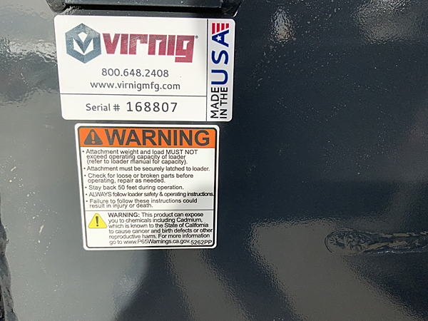 Description: New Virnig LSWP120 V50 120" snow pusher with pull back option, recommended for loaders with operating capacities greater than 1,500 lbs. Equipped with 1½ X 10" reversible replaceable rubber edge, 3" of wear per side of rubber edge, floating side plates allow pusher weight to be transferred onto the edge, heavy duty frame with +/- 4 degrees of oscillation helps edge stay in contact with surface being cleared. Floating ram link compensates for edge wear, edge never requires adjusting, only needs to be reversed or replaced, pull back equipped with 1½ X 10" reversible, replaceable rubber edge (same part that is used on the snow pusher), 3" of wear per side of rubber edge, design allows for down pressure on the rubber edge. Includes all required hardware, pusher weighs about 1,035 lbs. and pull back weighs about 275 lbs., for a total weight of about 1,310 lbs. Lists @ $6,565. Other sizes/models are available. Please call for details. Note: This snow pusher has been sold, but additional units are available. Please call for details. 11/30/2022