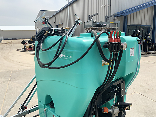 Description: New Enduraplas SLC200FG8GRS 200-gallon Land Champ 3 pt. mounted sprayer, three manual boom section control valves with adjustable pressure regulator and liquid-filled gauge, tank sight gauge, 18-gallon flush/safety tank with sight gauge, Cat I/II 3 pt. hitch mast.