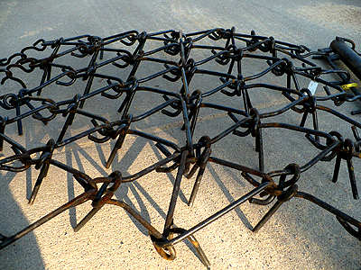 Description: Walco V-H6-40 6' X 8' flexible drag harrow with 7/16" diameter teeth. Includes pipe draw bar with pull chain. (Not pictured.) We have three one unit in stock. 05/28/2025