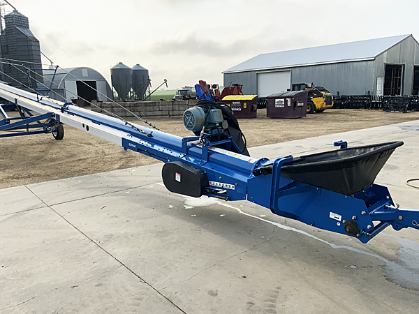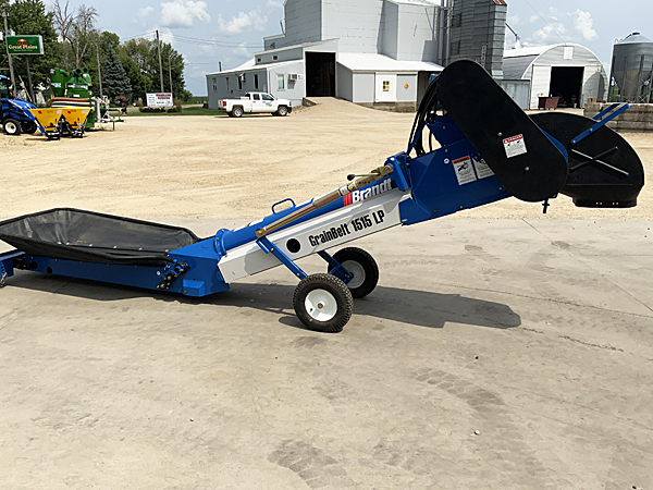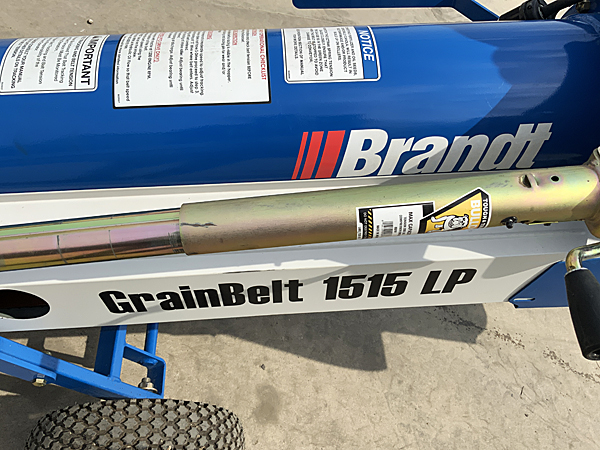 Description: Used Brandt GrainBelt 1515LP low profile belt conveyor, Weg 5 hp 3-phase motor with cord, collapsible hopper. Low usage; like new condition. 02/27/2024