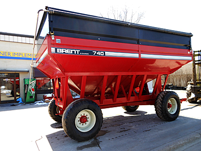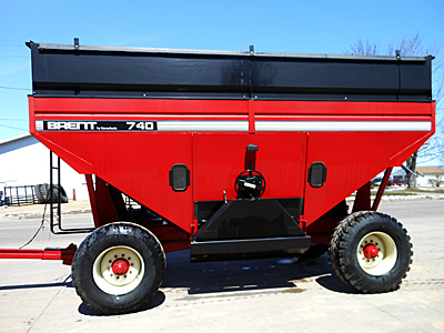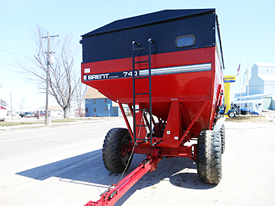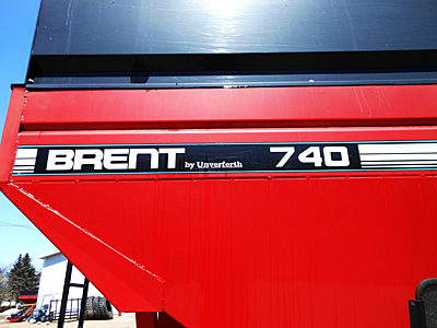 Description: Brent GT740 grain wagon, 750-bushel capacity, 4 wheel brakes, 445X22.5 tires, roll tarp. Clean, sharp box. Note: This grain wagon was stolen off our lot in December 2013. Please contact us if you know anything about this theft or the location of this grain wagon. Thank you.
