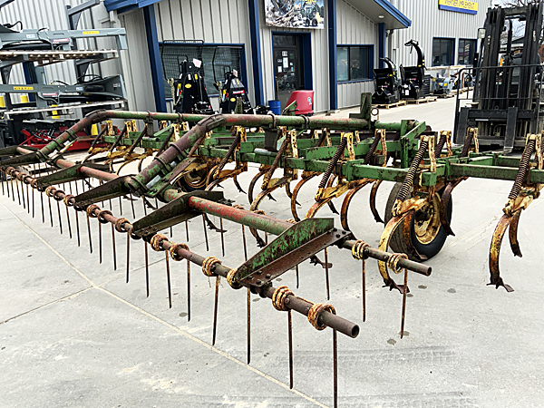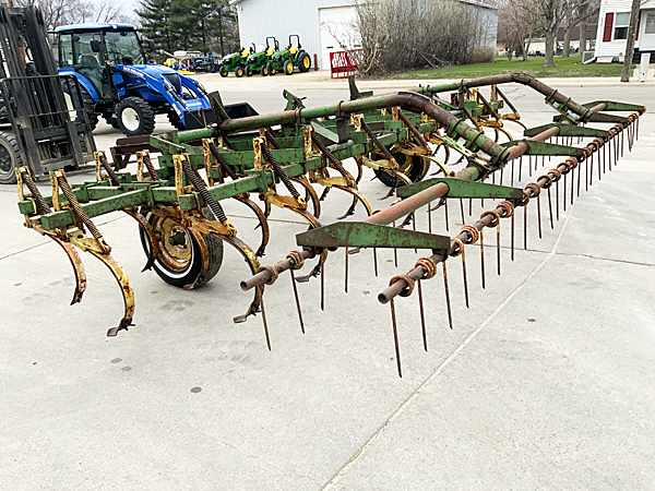 Description: Used Glencoe FC-105 15-foot field cultivator with 2-bar Midwest drag harrow, good shovels. Serviced through shop. Good older cultivator. S.N.: 19298